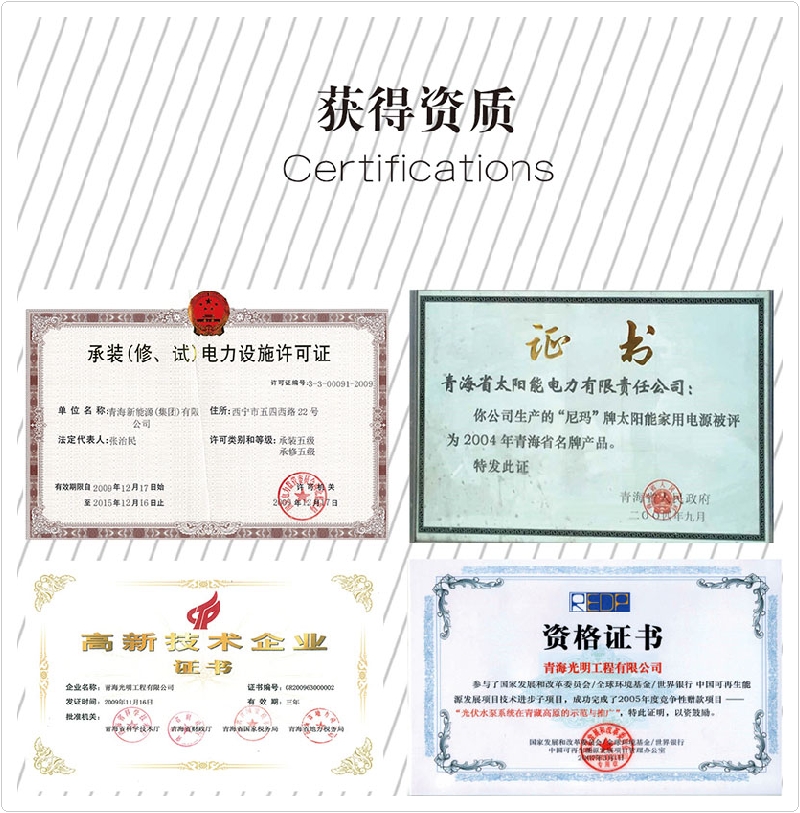 公司先后榮獲“全國專利先進科技研究院”、“全國各族青年團結(jié)進步集體”、“青年文明號”,“青海省模范集體”,“全國教科文衛(wèi)系統(tǒng)先進工會組織”、全省“學(xué)習型組織標兵”單位、全國“創(chuàng)新性試點企業(yè)”、連續(xù)三年被中國農(nóng)業(yè)銀行青海分行授予“AAA信用企業(yè)”和“AAA優(yōu)良客戶”等榮譽稱號。公司擁有“尼瑪”牌太陽能。