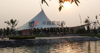 盡管上述四種基本形式的造型各不相同,但都遵循一個原則,即要通過剛性支承構(gòu)件或連接件在膜面內(nèi)形成一系列的高點(diǎn)和低點(diǎn);這正是互反曲面的基本特征,即互反曲面的邊界不會位于同一平面內(nèi)。把握了這一原則,在實(shí)際設(shè)計(jì)中就可以根據(jù)支承構(gòu)件的形式(桅桿、拱或吊環(huán))及其對膜的支承方式(點(diǎn)支承或線支承),來選取適當(dāng)?shù)纳虡I(yè)廣場雨棚搭建造型形式。
