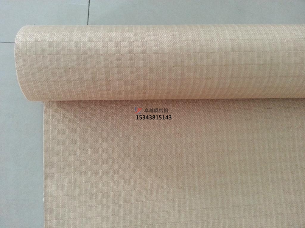 玻纖PVC建筑膜材。這種膜材開發(fā)和應(yīng)用得比較早,通常規(guī)定PVC涂層在玻璃纖維織物經(jīng)緯線交點(diǎn)上的厚度不能少于0.2mm,一般涂層不會(huì)太厚,達(dá)到使用要求即可。為提高PVC本身耐老化性能,涂層時(shí)常常加入一些光、熱穩(wěn)定劑,淺色透明產(chǎn)品宜加一定量的紫外吸收劑,深色產(chǎn)品常加炭黑做穩(wěn)定劑。另外對PVC的表面處理還有很多方法,可在PVC上層壓一層極薄的金屬薄膜或噴射鋁霧,用云母或石英來防止表面發(fā)粘和沾污。