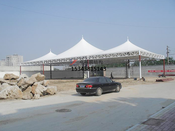 膜結(jié)構(gòu)材料不同于以往的車棚材料,不僅有保護(hù)車棚的作用,還迎合了當(dāng)今時代美化環(huán)境需要,膜結(jié)構(gòu)加油站主要是依靠膜自身的張力和拉力等應(yīng)力與支撐桿和拉索來共同組成的一個比較完整的機(jī)構(gòu)體系,它的材料主要是玻璃纖維或者聚酯纖維,因此在白天、夜晚都可以形成一個很好的視覺效果。