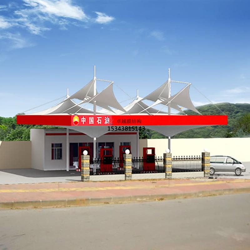 3、加油站罩棚膜結(jié)構(gòu)以造型學,色彩為依托,可結(jié)合自然條件及民族風情,享受大自然般浪漫空間;