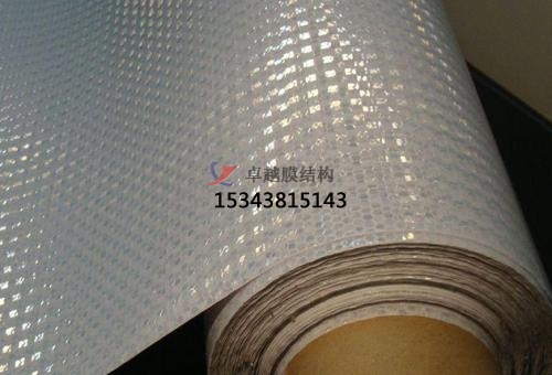 膜結(jié)構(gòu)車棚上面的膜材是一一種刀刮布,是一種化學合成材料,厚度比普通的布要厚。刀刮布的正面是光滑的,背面是粗糙的,顆粒狀比較厚分布布均勻。