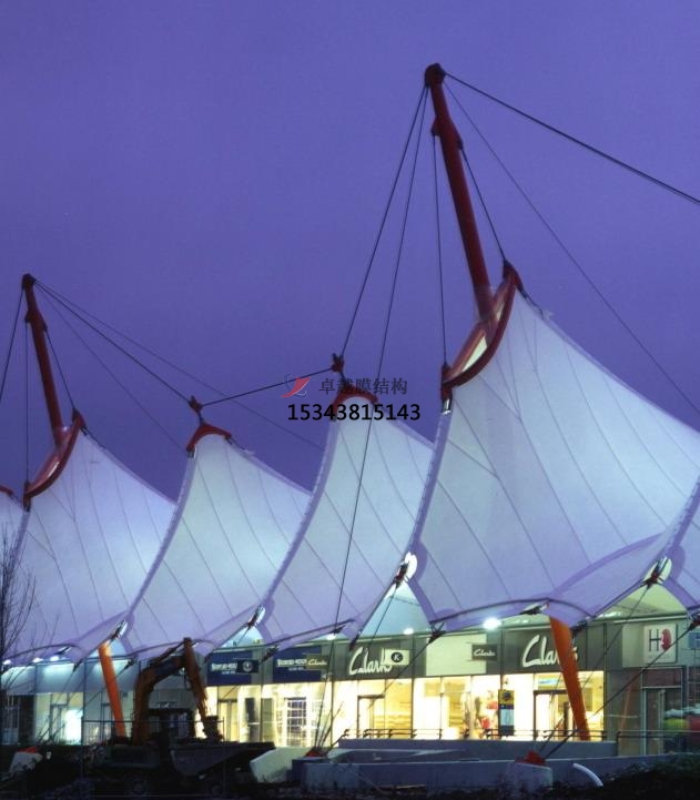 2、 透光性:透光性是現(xiàn)代膜結(jié)構(gòu)更被廣泛認(rèn)可的特性之一。膜材的透光性可以為建筑提供所需的照度,這對(duì)于建筑節(jié)能十分重要。對(duì)于一些要求光照多且亮度高的商業(yè)建筑等尤為重要。通過(guò)自然采光與人工采光的綜合利用,膜材透光性可為建筑設(shè)計(jì)提供更大的美學(xué)創(chuàng)作空間。夜晚,透光性將膜結(jié)構(gòu)變成了光的雕塑。