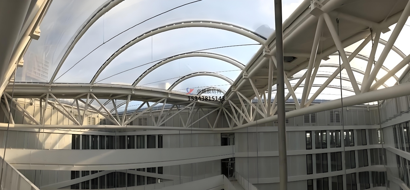 ETFE膜,更大的優(yōu)勢還在于它們可以加工成任何尺寸和形狀,滿足大跨度的需求,節(jié)省了中間支承結(jié)構(gòu)。作為一種充氣后使用的材料,它可以通過控制充氣量的多少,對遮光度和透光性進(jìn)行調(diào)節(jié),有效地利用自然光,節(jié)省能源,同時起到保溫隔熱作用。