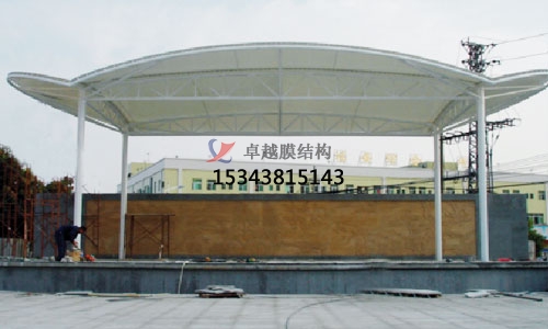 ?。?)充氣商業(yè)廣場雨棚搭建,即薄膜的剛度由空氣壓力供給。一般兩種方式:①以室內(nèi)氣壓支承膜材的氣承式商業(yè)廣場雨棚搭建。②充氣于特定形狀的關(guān)閉囊內(nèi),使之構(gòu)成具有必定剛度的結(jié)構(gòu)或構(gòu)件的氣肋狀商業(yè)廣場雨棚搭建。
