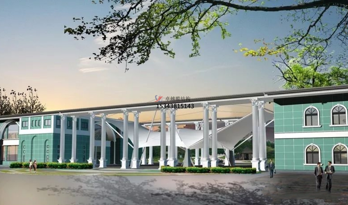 膜結(jié)構(gòu)大門作為建筑或景區(qū)入口,用來遮風(fēng)擋雨,也是景區(qū)的臉面,是景區(qū)神韻的表達(dá),不僅要求其造型新穎,有創(chuàng)意,而且還要考慮建造材質(zhì)。