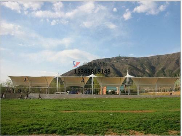 以上兩種更簡(jiǎn)單的膜結(jié)構(gòu),依平面的形狀,如方形、菱形等,可有許多變化,拱的間距依使用的膜材強(qiáng)度、設(shè)計(jì)荷載、風(fēng)力等確定。