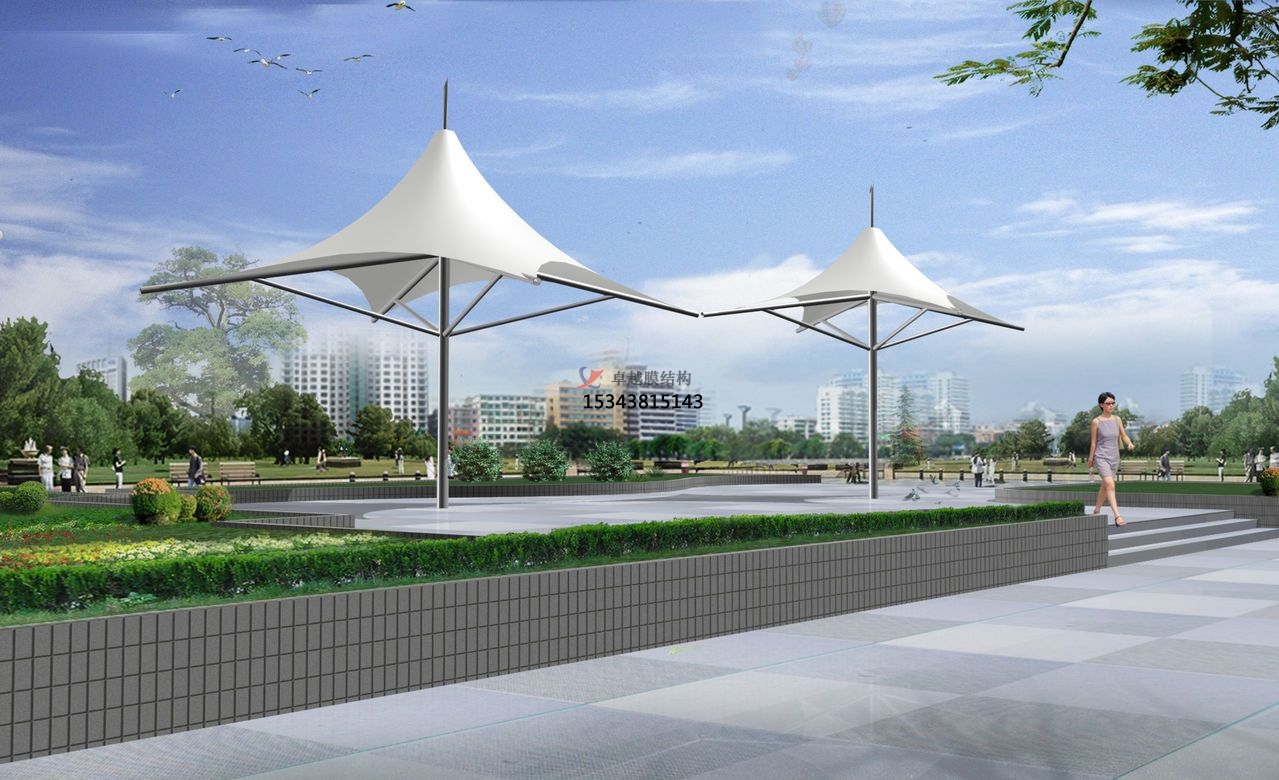 1.膜結(jié)構(gòu)用來(lái)做公園小品建筑,為環(huán)境裝飾更添藝術(shù)色彩.帶給人們不同的環(huán)境轉(zhuǎn)換感和新鮮感;
