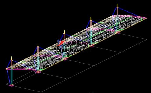 本工程膜材采用白色高端國(guó)產(chǎn)星益達(dá)PVDF高自潔環(huán)保建筑膜材,鋼結(jié)構(gòu)采用更好的標(biāo)準(zhǔn)Q235B鋼材,表面采用酚醛底漆處理,面漆采用白色鋼結(jié)構(gòu)專(zhuān)用快干磁漆。