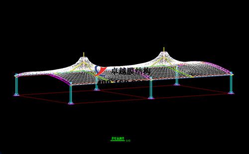 本工程膜材采用白色高端國產(chǎn)星益達PVDF高自潔環(huán)保建筑膜材,鋼結(jié)構(gòu)采用更好的標(biāo)準(zhǔn)Q235B鋼材,表面采用酚醛底漆處理,面漆采用白色鋼結(jié)構(gòu)專用快干磁漆。