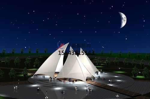 2.膜結構建筑的整體藝術性強的特點:膜結構建筑突破了傳統(tǒng)的建筑結構類型,以造型學、色彩學為依托,可以結合每個現場的自然條件,充分發(fā)揮建筑師的想象力,根據創(chuàng)意建造出傳統(tǒng)建筑難以實現的曲線線條造型,使膜結構建筑建筑色彩豐富,富有時代氣息,可以完美的詮釋出結構的構件受力之美。夜晚在配合燈光易形成夜景,會給人以現代美的享受。
