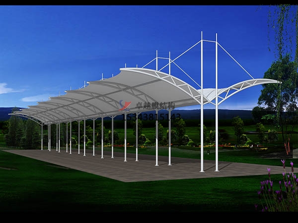 目前國內(nèi)大部分膜結(jié)構(gòu)工程使用的都是聚酯纖維膜材料,即PVC聚酯纖維膜材,表面涂以PVDF聚氟化合物,增強了原有PVC膜材耐污染、抗老化的性能,膜材使用壽命增加到10-15年。聚酯纖維是膜建筑中應(yīng)用更廣泛的纖維,并認為是建筑膜材標準產(chǎn)品。聚酯纖維拉伸強度高,彈性好。在拉伸屈服前,纖維具有較大的伸長變形能力,使得在安裝時可進行一定的調(diào)整。但日照將使聚酯纖維老化,彈性與強度等力學(xué)性能降低,所以很多建筑采用PTFE、ETFE等永久性膜材。