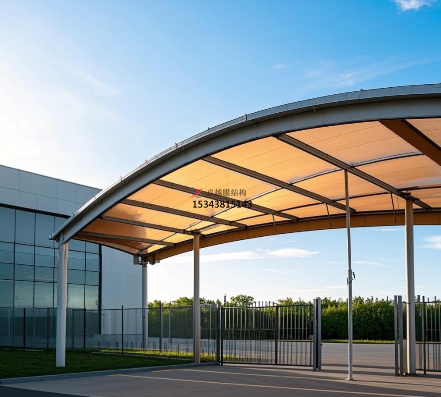 在力學(xué)結(jié)構(gòu)方面,膜結(jié)構(gòu)大門(mén)通過(guò)膜材與支撐的鋼結(jié)構(gòu)緊密配合,實(shí)現(xiàn)了堅(jiān)固與輕盈的完美結(jié)合。借助先進(jìn)的預(yù)應(yīng)力張拉技術(shù),膜結(jié)構(gòu)能夠承受較大的風(fēng)力和雪載。即使在強(qiáng)風(fēng)天氣中,膜結(jié)構(gòu)大門(mén)也能憑借自身柔性結(jié)構(gòu),巧妙地分散風(fēng)力,保持穩(wěn)定,為小區(qū)居民的安全提供堅(jiān)實(shí)保障。同時(shí),膜結(jié)構(gòu)的輕盈特性大大減輕了建筑自重,相較于傳統(tǒng)大門(mén),對(duì)地基的壓力更小,降低了基礎(chǔ)建設(shè)成本,在一定程度上也縮短了施工周期,減少了對(duì)居民生活的影響。