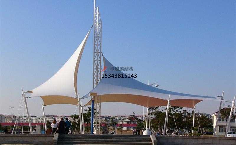 張拉膜景觀加工制作主要加工流程包括:進(jìn)料→檢驗(yàn)?zāi)げ?rarr;圖紙技術(shù)會審→膜片下料、編號→膜片編排放樣→膜片初拼→高頻駁接→包裝。由于膜材的裁剪、包裝過程都較為復(fù)雜,各種角度變化較多,且加工精度要求非常高,所以在制作過程中要加強(qiáng)質(zhì)量管理,保證制作精度。加工時(shí)的注意事項(xiàng)有: