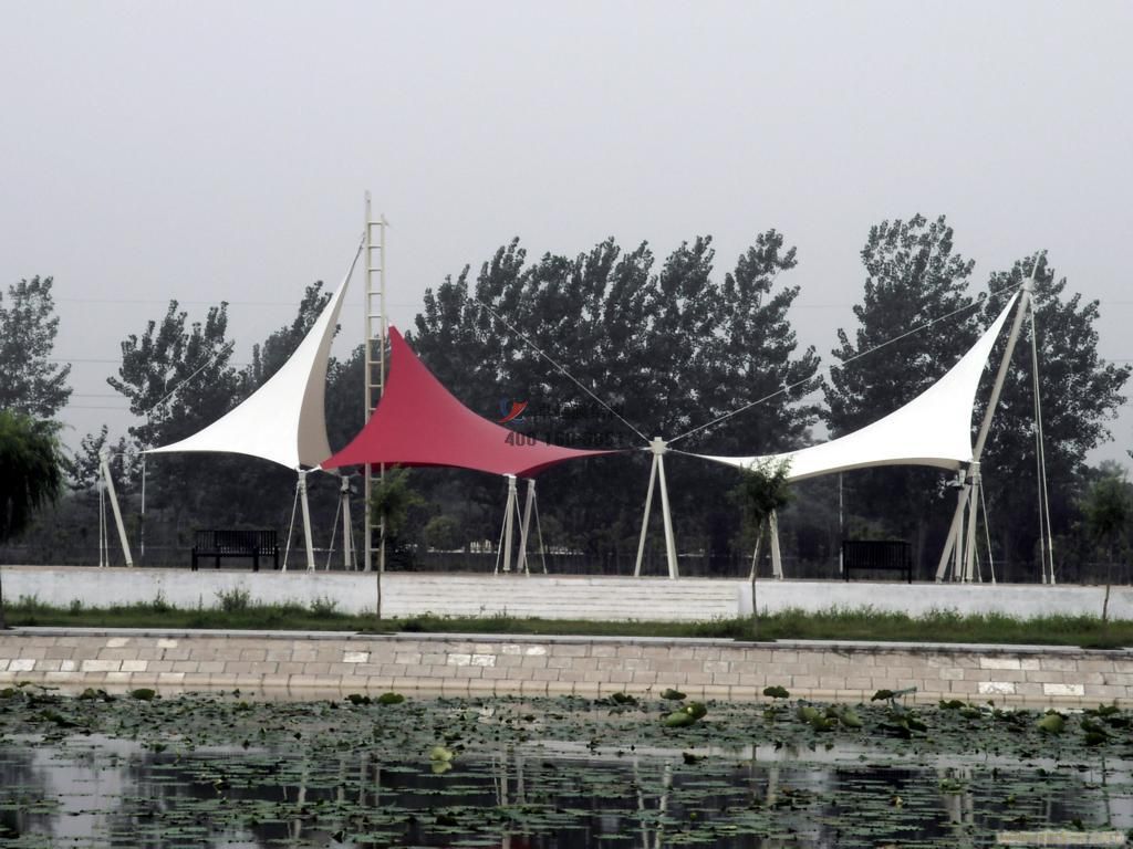 6、這是我司十堰及周邊地區(qū)完工的膜結(jié)構(gòu)景觀工程案例,膜結(jié)構(gòu)景觀具有外觀新穎,經(jīng)濟(jì)適用,適用壽命長,節(jié)能透光等優(yōu)點。 其張力結(jié)構(gòu)自重小,其主要是依靠預(yù)應(yīng)力而非材料來保持形態(tài)結(jié)構(gòu)的穩(wěn)定性。所以比傳統(tǒng)的景觀設(shè)施重量輕得多,但卻具有良好的穩(wěn)定性深受廣大用戶的好評,我司所有工程全部通過專業(yè)膜結(jié)構(gòu)軟件計算通過,結(jié)構(gòu)安全,質(zhì)量可靠,歡迎來電訂購,小編期待您的咨詢,聯(lián)系電話:13101719686。