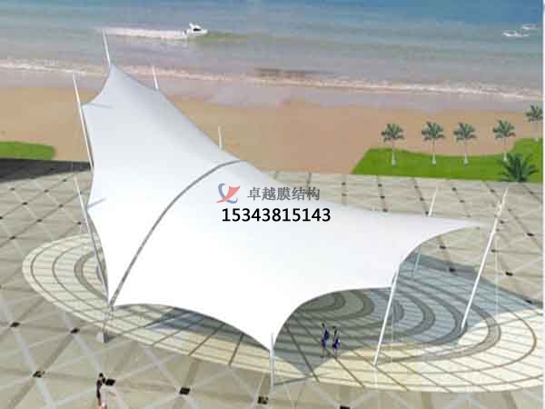 2、景觀膜結(jié)構(gòu)是目前發(fā)展很快的一種新型空間結(jié)構(gòu),是一種效率極高的張力集成體系,可以充分發(fā)揮鋼索的強度與張拉整體結(jié)構(gòu)的空間作用。它通過鋼骨架、鋼索與膜材共同受力形式穩(wěn)定曲面來覆蓋建筑空間,具有高度的形體可塑性和結(jié)構(gòu)靈活性,即通過對膜材內(nèi)部施加一定的預張力,使其具備了抵抗外荷載能力,從而充當結(jié)構(gòu)材料的一種結(jié)構(gòu)體系。我公司先后在湛江地區(qū)承接了湛江城市廣場景觀、湛江海濱公園景觀、湛江鼎盛廣場景觀小品的設(shè)計施工,簡介如下: