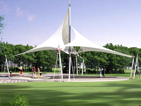 2、膜結構它是一種建筑與結構完美結合的結構體系,是用高強度柔性薄膜材料與支撐體系相結合形成的具有一定剛度的穩(wěn)定曲面,能承受一定外荷載的空間結構形式。更好的膜結構設計是結構與外形的有機融合,使其顯得了類拔萃,同時與自然環(huán)境、歷史及現(xiàn)代的城市景觀有機結合。輕型結構可以看成是大型的雕塑作品,可為其周邊空間增添活力,成為周圍環(huán)境的補充和焦點 。