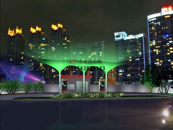 加油站膜結(jié)構(gòu),荷載態(tài)分析:張拉膜結(jié)構(gòu)自身重量很輕,僅為鋼結(jié)構(gòu)的1/5,混凝土結(jié)構(gòu)的1/40;因此膜結(jié)構(gòu)對(duì)地震力有良好的適應(yīng)性,而對(duì)風(fēng)的作用較為敏感。此外還要考慮雪荷載和活荷載的作用。