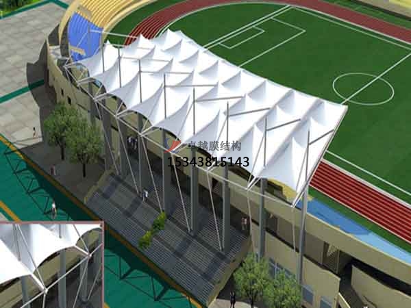 索膜結(jié)構(gòu)景觀看臺的特點:索膜結(jié)構(gòu)景觀看臺具有造型美觀、輕盈靈活、節(jié)能環(huán)保、施工簡便、適應(yīng)性強(qiáng)和經(jīng)濟(jì)性好等特點。其膜材具有優(yōu)異的柔韌性和可塑性,能夠創(chuàng)造出豐富多彩的建筑造型,如貝殼形、波浪形、球形等,為景觀增添獨特的藝術(shù)魅力,使其成為場地的標(biāo)志性建筑。膜材和鋼索的重量相對較輕,整個結(jié)構(gòu)的自重僅為傳統(tǒng)鋼筋混凝土結(jié)構(gòu)的幾分之一甚至十幾分之一,大大降低了對地基承載力的要求,同時也便于運輸和安裝,適用于各種地形和環(huán)境。膜材具有良好的透光性,白天可以充分利用自然采光,減少人工照明能耗;同時,膜材的保溫隔熱性能也優(yōu)于傳統(tǒng)建筑材料,有助于降低空調(diào)能耗,節(jié)約能源。此外,膜材可回收再利用,符合綠色環(huán)保的建筑理念。膜結(jié)構(gòu)看臺的施工過程相對簡單,不需要大型機(jī)械設(shè)備和腳手架等輔助工具。裁剪、拼接和安裝都可以在加工廠完成,現(xiàn)場只需進(jìn)行簡單的張拉和錨固,施工周期短,能夠快速投入使用。索膜結(jié)構(gòu)景觀看臺的設(shè)計可以根據(jù)不同的需求和場地條件進(jìn)行定制,適應(yīng)各種地形和環(huán)境,如山地、水域、不規(guī)則地形等,還可以與周邊的自然景觀和建筑風(fēng)格相融合。由于膜材采購成本較低,施工周期短,基礎(chǔ)工程量小,以及維護(hù)成本低等因素,使得索膜結(jié)構(gòu)景觀看臺的整體造價通常低于傳統(tǒng)建筑形式,具有較好的經(jīng)濟(jì)性。
