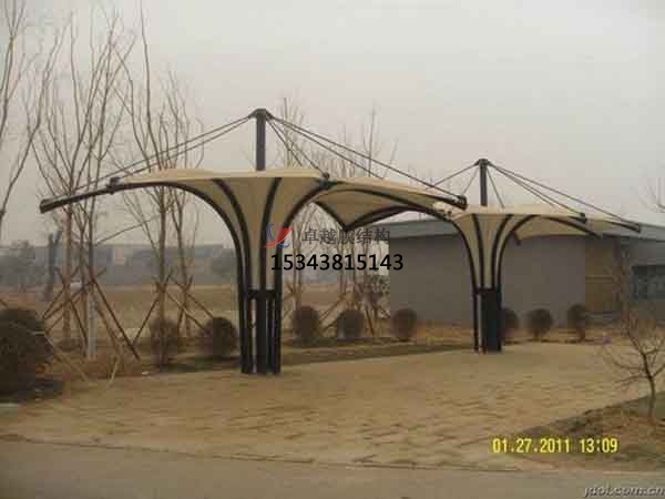 膜結(jié)構(gòu)的柔性使其在任一荷載作用下均以更有利的形態(tài)承載。當(dāng)然,結(jié)構(gòu)的布置和形狀要根據(jù)荷載情況來進行設(shè)計和調(diào)整。設(shè)計要確何膜面與其輔助結(jié)構(gòu)協(xié)調(diào)工作,以避免力在膜面或輔助結(jié)構(gòu)上集中而達結(jié)構(gòu)破壞的臨界值。
