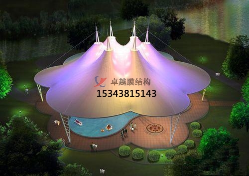 3、文化娛樂(lè)設(shè)施:膜膜結(jié)構(gòu)建筑可適用于各種大小娛樂(lè)設(shè)施,包括劇場(chǎng)、音樂(lè)廳、會(huì)議廳,博物館、展覽中心、水族館、海洋公園、生態(tài)園藝等。根據(jù)建筑具體功能,選用合理膜材,進(jìn)行聲、光、熱設(shè)計(jì)。需要注意的是,對(duì)劇場(chǎng)、音樂(lè)廳,要控制回聲、噪音,保證音樂(lè)品質(zhì);生態(tài)園藝注意考慮透光率和紫外線通透量;展覽館則側(cè)重保溫隔熱和適當(dāng)透光率。