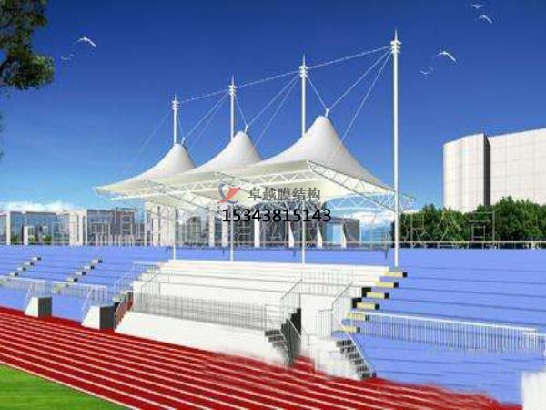 由于膜材的光透性,白天陽光可以透過膜材形成慢射光,使室內(nèi)達到和室外幾乎一樣的自然效果,因此膜結(jié)構(gòu)能創(chuàng)造出與自然環(huán)境相媲美的空間形式。體育場看臺采用膜結(jié)構(gòu)的設(shè)計,膜結(jié)構(gòu)的張拉樣式無形當中增大了空間跨度,輕輕松松的將整個的看臺處被覆蓋,在簡化了建筑結(jié)構(gòu)的同時建筑重量也輕松很多,讓施工更簡便,還降低了施工工人的危險系數(shù),縮短了工程的建造工期。