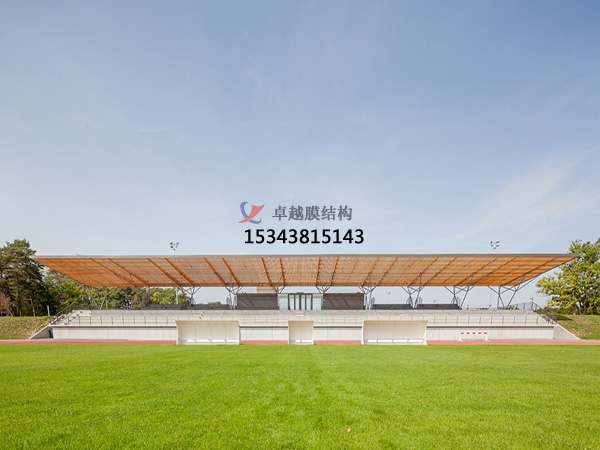 由于膜材的光透性,白天陽光可以透過膜材形成慢射光,使室內(nèi)達到和室外幾乎一樣的自然效果,因此膜結構能創(chuàng)造出與自然環(huán)境相媲美的空間形式。體育場看臺采用膜結構的設計,膜結構的張拉樣式無形當中增大了空間跨度,輕輕松松的將整個的看臺處被覆蓋,在簡化了建筑結構的同時建筑重量也輕松很多,讓施工更簡便,還降低了施工工人的危險系數(shù),縮短了工程的建造工期。