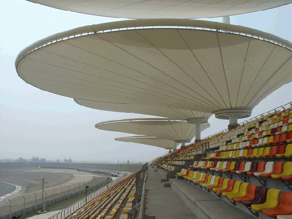 三、膜構(gòu)造的裝置宜在風(fēng)力不大于四級(jí)的情況下進(jìn)行。在裝置過(guò)程中應(yīng)充沛留意風(fēng)速和風(fēng)向,避免發(fā)作額抖景象。-起應(yīng)依據(jù)降雨的程度決議工程的間斷和持續(xù)。