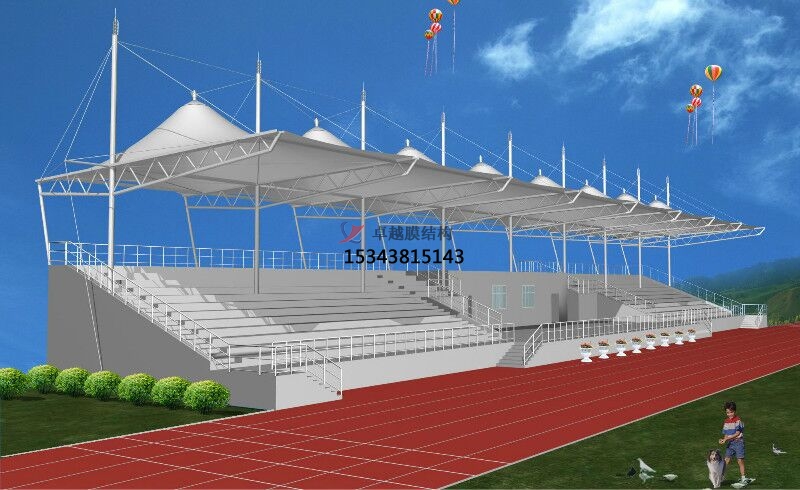 張拉膜看臺(tái)主要用于各類(lèi)地方體育場(chǎng)主席臺(tái)雨棚,各類(lèi)學(xué)校體育場(chǎng)看臺(tái)雨棚遮蓋,我公司是國(guó)內(nèi)較早從事大懸挑張拉膜結(jié)構(gòu)看臺(tái)設(shè)計(jì)施工的專(zhuān)業(yè)廠家,下面介紹一下我們?cè)诒本┦兄苓吙h市完工的一些張拉膜看臺(tái)設(shè)計(jì)施工案例,我公司先后在北京周邊承接了北京市第八中學(xué)張拉膜看臺(tái)雨棚、北京市第四中學(xué)張拉膜張拉膜看臺(tái)罩棚、北京中學(xué)張拉膜看臺(tái)遮陽(yáng)棚等設(shè)計(jì)施工項(xiàng)目,簡(jiǎn)介如下: