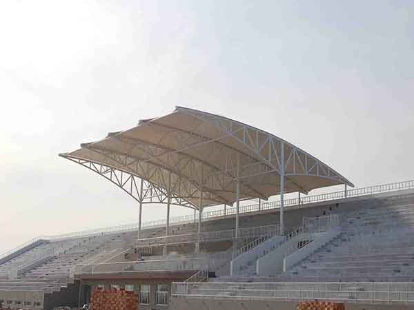 張拉膜看臺主要用于各類地方體育場主席臺雨棚,各類學校體育場看臺雨棚遮蓋,我公司是國內(nèi)較早從事大懸挑張拉膜結(jié)構(gòu)看臺設(shè)計施工的專業(yè)廠家,下面介紹一下我們在蘇州市周邊縣市完工的一些張拉膜看臺設(shè)計施工案例,我公司先后在蘇州周邊承接了蘇州大學文正學院張拉膜看臺雨棚、蘇州大學應用技術(shù)學院張拉膜看臺罩棚、蘇州幼兒師范高等專科學校張拉膜看臺遮陽棚等設(shè)計施工項目,簡介如下: