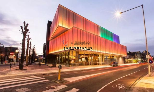 膜結(jié)構(gòu)和膜結(jié)構(gòu)幕墻的發(fā)展依賴于膜村的技術(shù)革命和技術(shù)發(fā)展,從歷史上來看,材料技術(shù)的革命為建筑學(xué)帶來越來越多的創(chuàng)意,也帶來無窮無盡的高要求。從現(xiàn)代主義到后現(xiàn)代主義,再到解構(gòu)主義建筑理論,甚至所謂混沌理論,無不例外地要求材料革命,而每次材料革命又給建筑學(xué)添上更多的新創(chuàng)作語匯。從建筑色彩學(xué)來看,透過建筑立面的顏色或本色看室內(nèi)的顏色,從亮到暗或從暗到亮,建筑師可根據(jù)層次深淺布局,色彩的冷暖安排,晝夜光源方向的異同,獲得自己想得到的建筑光學(xué)色彩效果。