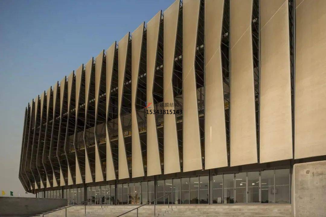根據(jù)纖維材質(zhì)可分為聚酯織物及玻璃織物;根據(jù)涂層可分為單邊涂層及雙邊涂層。目前織物涂層膜材是主流材料,包含PVC、PTFE、ETFE膜等。ETFE膜為現(xiàn)代建筑幕墻提供了一個嶄新的材料,經(jīng)過充氣后這種材料建造的墻體質(zhì)量輕、韌性好、不易被撕裂、延展性大,此外還具備良好的聲學(xué)性能,能有效消除回聲減少噪音。