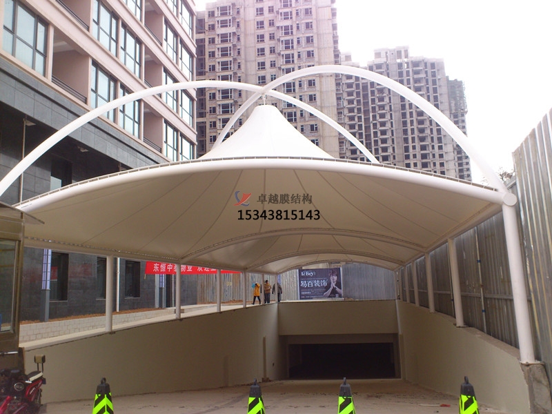 膜結(jié)構(gòu)雨棚是一種輕型、堅固的建筑結(jié)構(gòu),通常采用特殊的薄膜材料覆蓋在支撐結(jié)構(gòu)上,用于遮擋陽光和雨水。