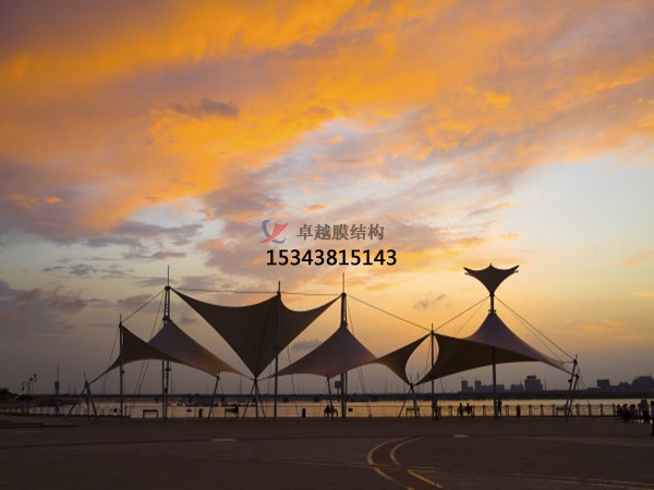 其二:膜材材質(zhì),PVC膜材與PVDF膜材作為兩種復(fù)合膜材,無論在防水、耐熱、抗腐中都具有一定的優(yōu)勢,但PVDF膜材要優(yōu)于PVC膜材。PVDF膜材是在PVC膜材上再作處理,一般PVC膜材的耐用年限是5-8年,改良后的PVDF膜材年限在10年以上,張拉性能、自潔性更好,表面灰塵會和雨水凝結(jié)成水珠,順勢流下,使膜材表面得到自然清洗。