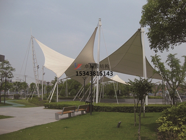 膜結(jié)構(gòu)自身重量很輕,僅為鋼結(jié)構(gòu)的1/5,混凝土結(jié)構(gòu)的1/40,因此索膜結(jié)構(gòu)對地震力有良好的適應(yīng)性,而對風(fēng)的作用較為敏感。此外雪荷載和活荷載的作用也在設(shè)計范圍之內(nèi)。公園建筑選擇景觀小品膜結(jié)構(gòu),讓一層不變的綠色環(huán)境,搭建出一個又一個深入人心的膜結(jié)構(gòu)建筑,景觀膜結(jié)構(gòu)造型美觀,怎能不奪人眼球,吸引大眾注意力。