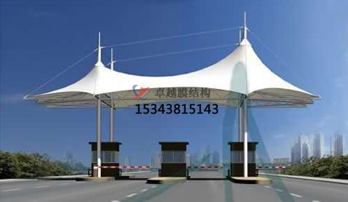 收費(fèi)站膜結(jié)構(gòu)的弧形線條是在體現(xiàn)膜材料得柔性性能的同時(shí)是充分得展現(xiàn)了膜結(jié)構(gòu)建筑的優(yōu)雅內(nèi)涵,其柔美特點(diǎn)與高速路的剛性與速度特點(diǎn)形成了鮮明的對(duì)比。同時(shí),收費(fèi)站膜結(jié)構(gòu)外形也延續(xù)了中國(guó)建筑中對(duì)稱的傳統(tǒng)特點(diǎn),在視覺上也滿足了大眾的審美觀。