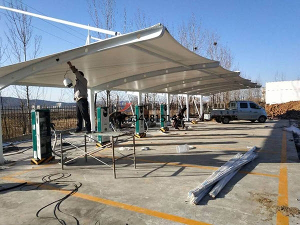 《膜結(jié)構(gòu)充電樁車棚施工圖片》