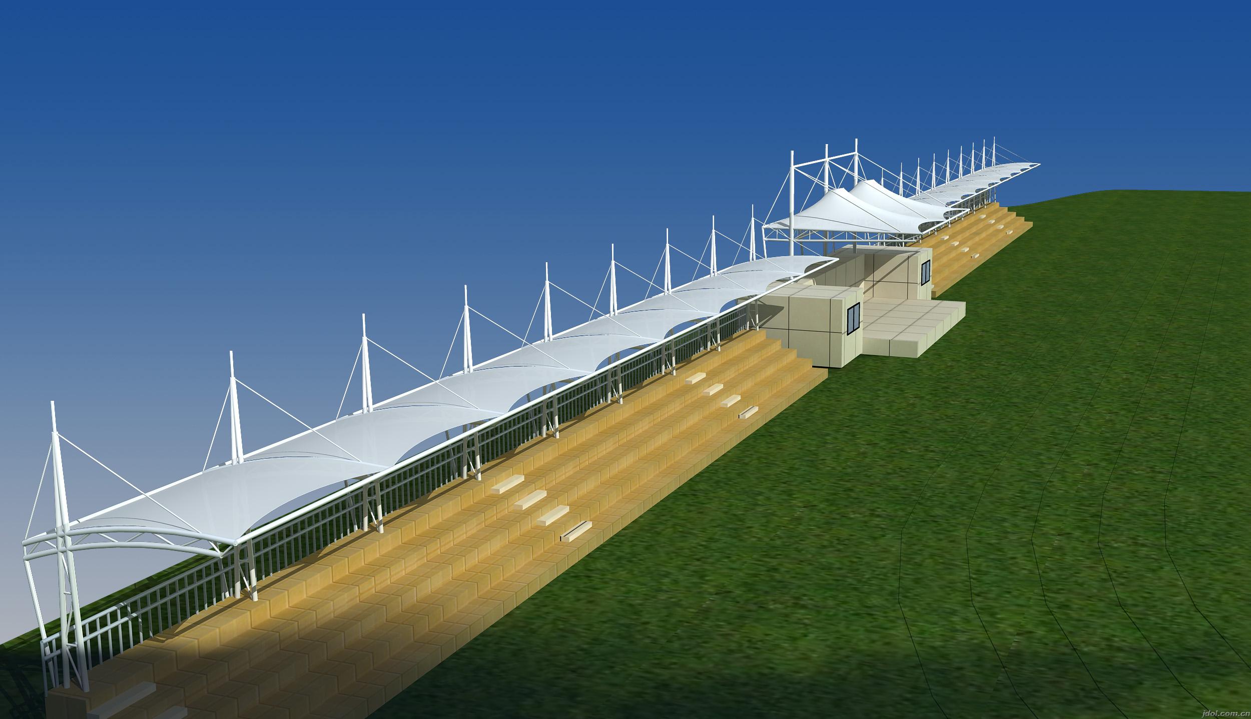 膜結(jié)構(gòu)作為大跨度體育場(chǎng)和體育場(chǎng)館的主要受力構(gòu)件和新型屋面體系,直接影響著建筑的安全性和功能。目前,膜結(jié)構(gòu)體育場(chǎng)看臺(tái)在我國得到了廣泛的應(yīng)用。膜結(jié)構(gòu)建筑能很好地覆蓋整個(gè)看臺(tái)。膜結(jié)構(gòu)的張拉式使建筑的空間跨度更大,同時(shí)降低了建筑的整體重量,使建筑更容易、更安全。這也是人們選擇膜結(jié)構(gòu)的重要原因。