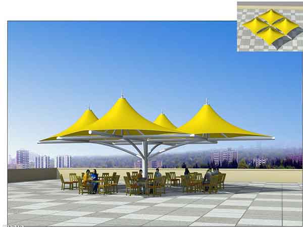 6、這是膜結構景觀工程的案例,膜結構所用的膜材本身具有良好的透光率,建筑空間白天可得到自然的漫射光,能節(jié)約大量照明能源;相對于傳統(tǒng)涂理PVC的聚醋纖維膜材,涂覆PTFE的玻瑞纖維膜材的透射光譜更加均勻具有外觀新穎,經濟適用,適用壽命長,結構更安全,質量更可靠。