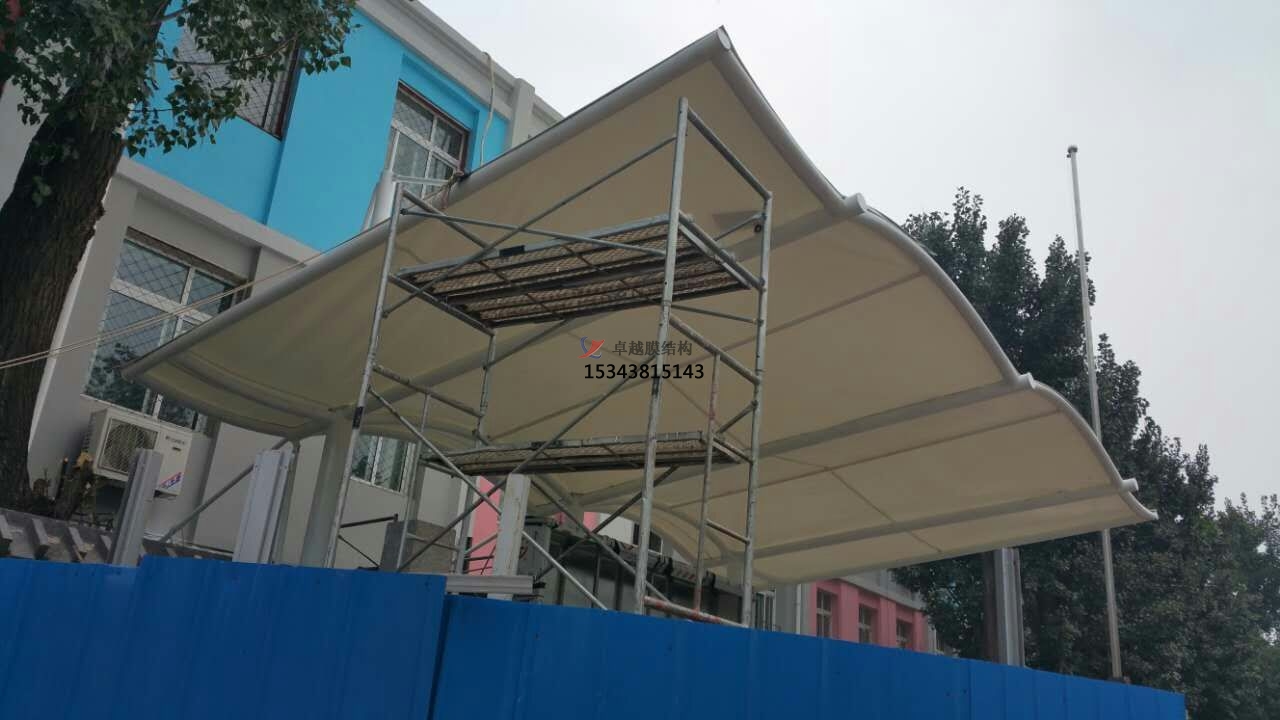 PVC膜材是一種經(jīng)濟(jì)實(shí)惠的膜材,由聚脂纖維織物加上PVC涂層(聚氯乙烯)而成。它的材質(zhì)柔軟,易于施工,但耐用年限較短,一般在5~8年。為了改善其耐候性,近年來(lái)已研發(fā)出在PVC涂層材的表面處理上做氟素系樹(shù)脂涂層的膜材