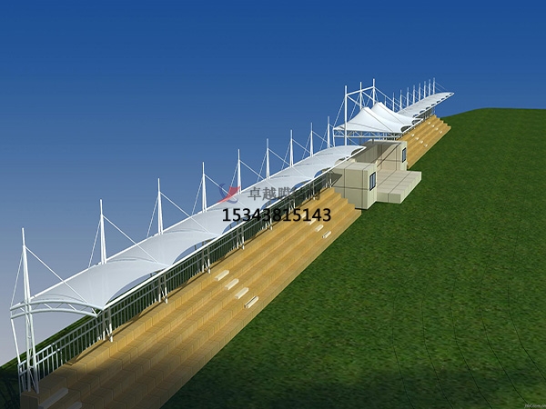 膜結(jié)構(gòu)建筑膜結(jié)構(gòu)所用的膜材料為具有阻燃、耐久、自潔等特性的復(fù)合材料,一般由基布和涂層二部分組成?;贾饕捎镁壑w維或玻璃纖維絲編織而成,有平織和絞等多種編織方法,不同的膜結(jié)構(gòu)車蓬編織方法影響著膜材料的經(jīng)緯向力學(xué)性能指標(biāo),膜的抗拉強度和抗撕裂強度等;涂層材料主要有聚四氟乙烯和聚氯乙烯,在一定程度上提高了膜材料各項強度指標(biāo),為提高膜材料的耐久、自潔等特性,表面往往有一層氟涂層或硅涂層,膜材料的耐火、耐久及防水、自潔等性能,決定著膜材料的物理特性。