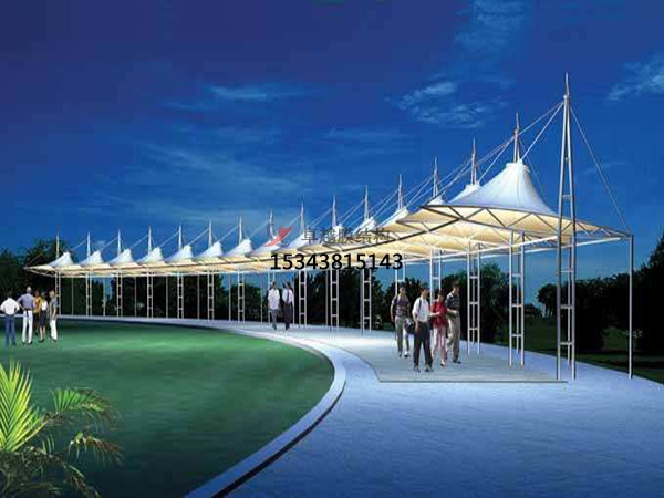 很好的先是采光系數(shù)高, 照射到屋面的陽光以漫射光的形式透射到室內(nèi)。內(nèi)部看屋面成為一個連續(xù)的光亮面,其強度因屋面與太陽的相對位置而變化。膜結(jié)構(gòu)屋面室內(nèi)空間的采光系數(shù)(即室內(nèi)外表面天然光日照水平之比)一般可高達10%;而傳統(tǒng)建筑,光線只能從有限的采光窗進人室內(nèi),其采光系數(shù)不到3%。即使在陰天,膜結(jié)構(gòu)室內(nèi)的光照水平也能夠滿足大多數(shù)活動的基本要求。