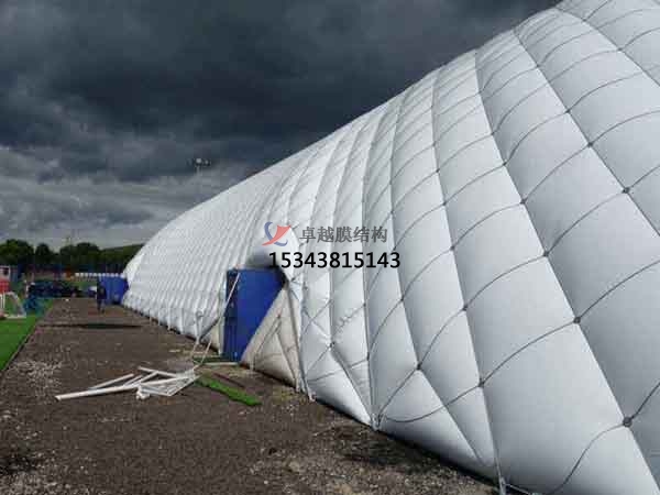 充氣膜體育館是用特殊的建筑膜材做外殼,配備一套智能化的機(jī)電設(shè)備在氣膜建筑內(nèi)部提供空氣的正壓,把建筑主體支撐起來的一種建筑結(jié)構(gòu)系統(tǒng)。