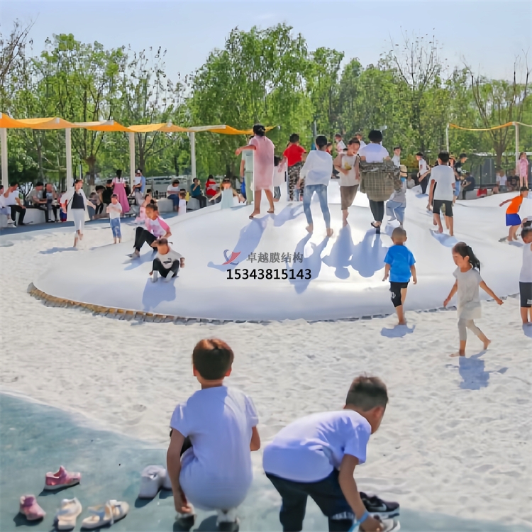 與傳統(tǒng)式蹦蹦床相比,卓越膜結(jié)構(gòu)公司的蹦蹦云可根據(jù)使用需求自由設(shè)計彈跳面的弧度與形狀,實現(xiàn)多種造型和異形結(jié)構(gòu)的設(shè)計,豐富的外觀造型帶來更強的美觀性和趣味性。