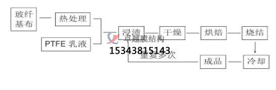 制作膜材的過程中,玻纖布需要進(jìn)行多次浸漬,而且要適當(dāng)控制每次浸漬的樹脂量,過少會(huì)達(dá)不到產(chǎn)品的性能要求,過多則在燒結(jié)后容易出現(xiàn)龜裂現(xiàn)象。