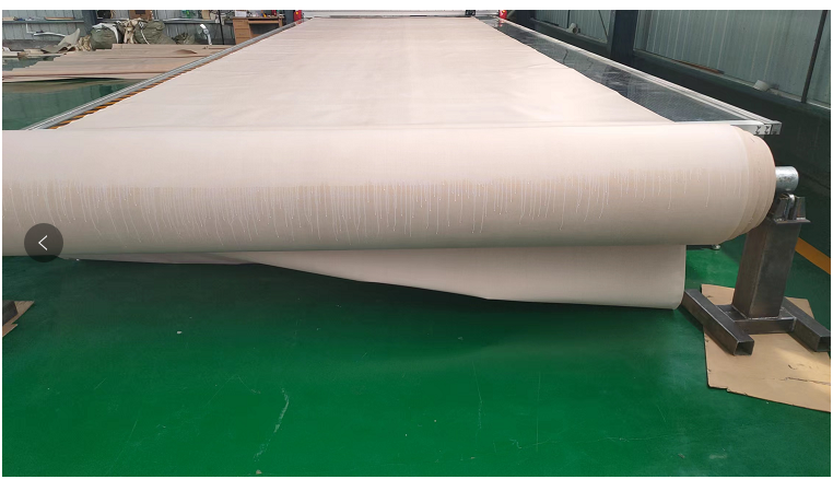 此圖為PTFE膜材裁剪加工,上裁剪機加工過程。
