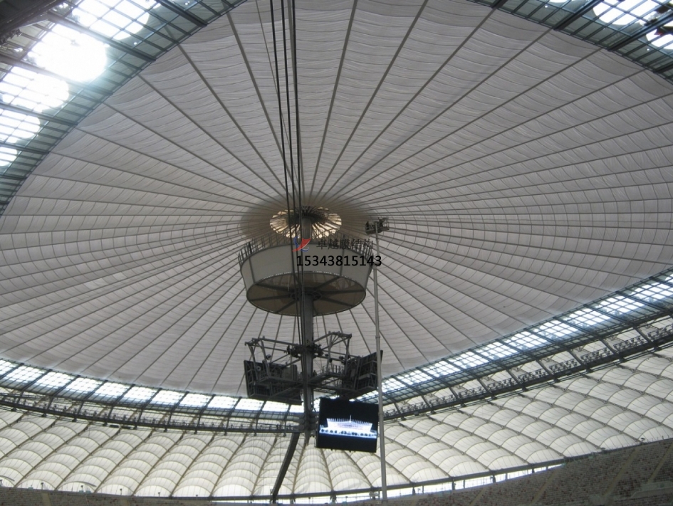 PTFE 膜材:透光率為13%,幾乎沒有紫外線透過,防止了內(nèi)部裝飾材料和設(shè)備的褪色,對熱能反射率73%,熱吸收量很少。