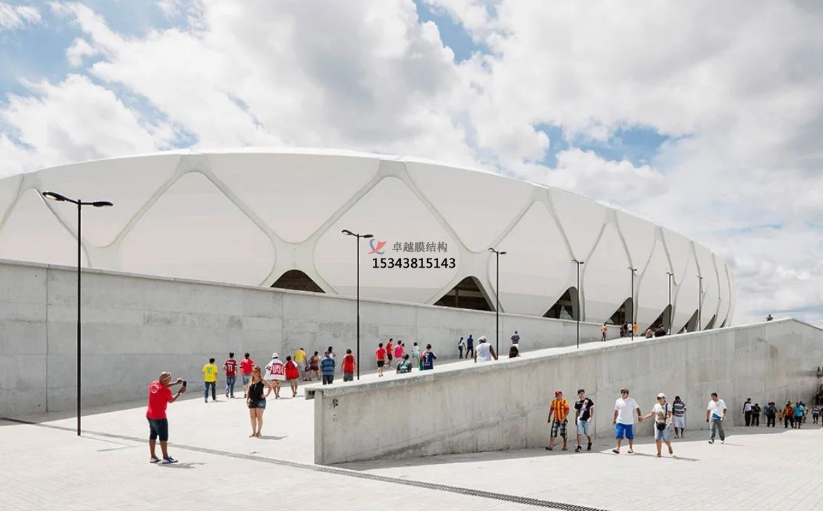 PTFE膜結(jié)構(gòu)具有良好的透光性和隔熱性,能有效降低能耗,提高室內(nèi)舒適度。此外,其輕質(zhì)高強(qiáng)的特性,使得結(jié)構(gòu)安裝便捷,維護(hù)成本低廉。