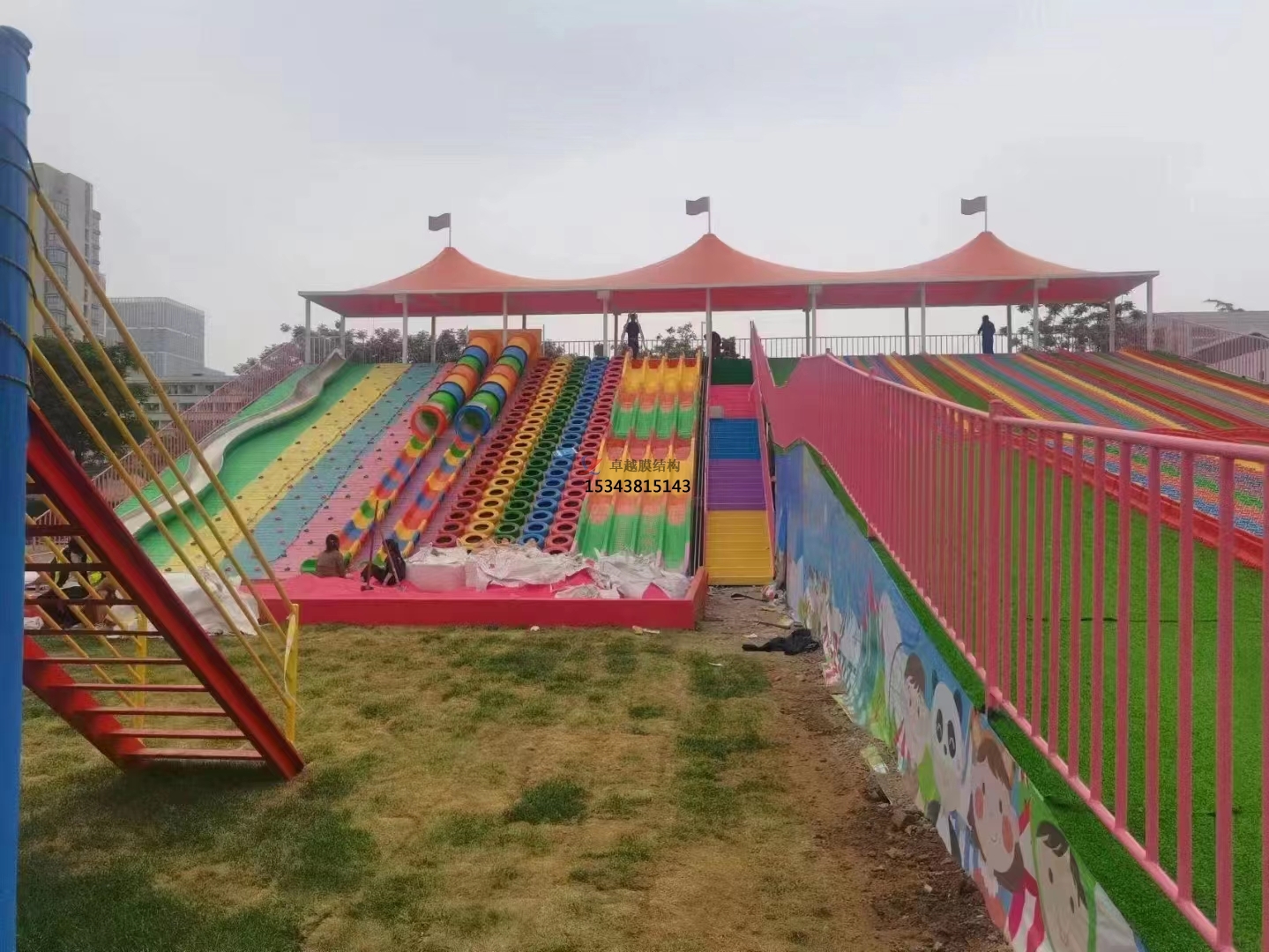 濮陽(yáng)彩虹滑道游樂設(shè)備紅色遮陽(yáng)棚結(jié)構(gòu)設(shè)計(jì)生產(chǎn)