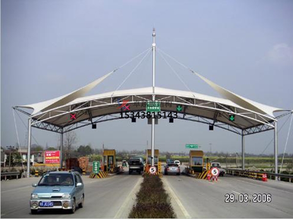 云浮卓越膜結(jié)構(gòu)工程公司是專業(yè)從事收費站雨棚,高速高速公路膜結(jié)構(gòu)、高速服務(wù)區(qū)充電站配套雨棚,高速公路服務(wù)區(qū)景觀遮陽棚,高速公路加油站罩棚的專業(yè)廠家,擁有一批國內(nèi)更早從事膜結(jié)構(gòu)行業(yè)的工程技術(shù)人才,并與云浮地區(qū)各著名設(shè)計院、大學都有緊密合作,使用國際更先進的膜結(jié)構(gòu)建筑設(shè)計軟件、荷載分析軟件、找型裁剪軟件、結(jié)構(gòu)計算軟件,充分保證了云浮卓越公司在中國膜結(jié)構(gòu)領(lǐng)域技術(shù)領(lǐng)先性。下面給各位介紹一下我公司在云浮及周邊縣市完工的一批高速公路收費站膜結(jié)構(gòu)工程案例。